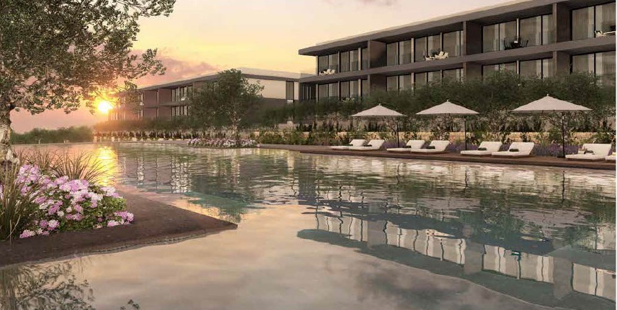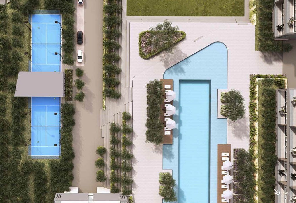 Thoughtfully designed, the development features nine modern apartment buildings comprising 150 stylish residences, all nestled within landscaped gardens enriched by more than 400 olive trees. The project perfectly blends contemporary architecture with its natural surroundings, creating a relaxed yet sophisticated living environment.