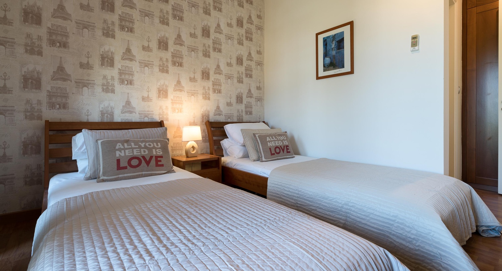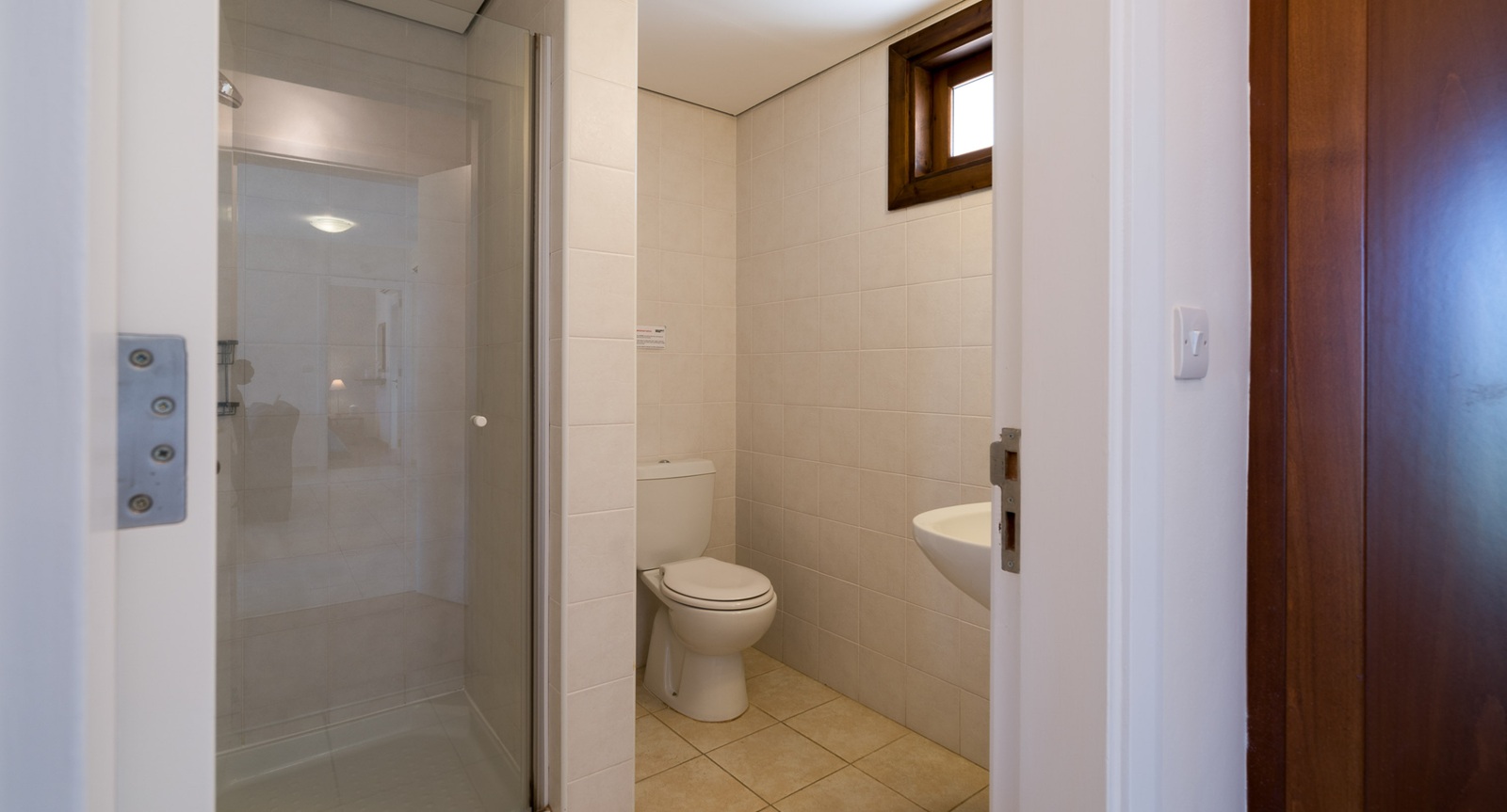 With two bedrooms, both en-suite, the master bathroom includes a bath, that are spacious and light, with French doors leading to the partially covered terrace and garden. The second bedroom also has doors to the garden. The interior of the property is fully air-conditioned throughout, which can heat in winter for all year round comfort.
