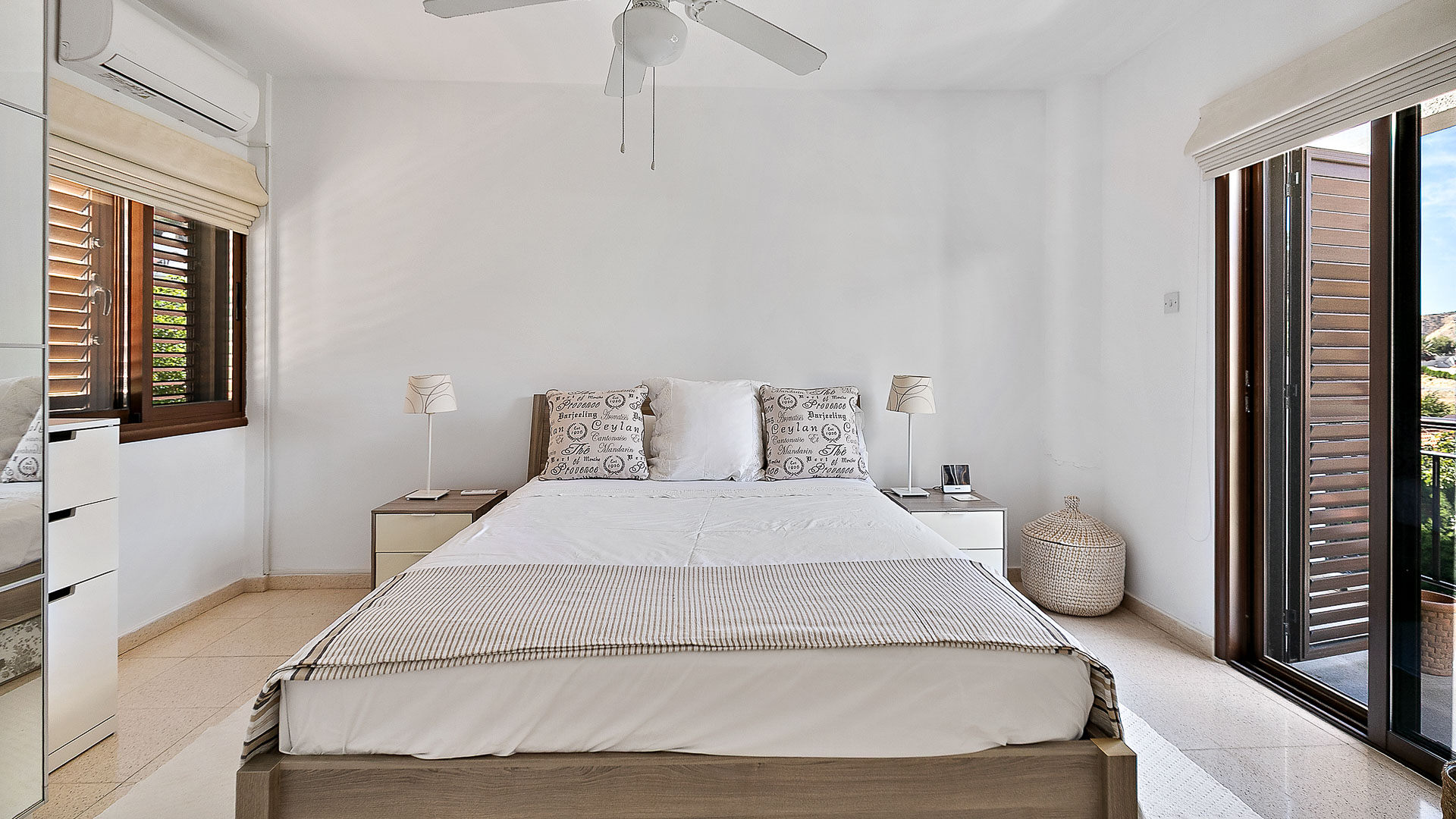 Upstairs there are two good sized bedrooms, both with small terraces to take in the surroundings. Fully fitted wardrobes make good use of the space. The main bedroom is double aspect ensuring you sleep in comfort with open windows enjoying the sea breeze. A fully fitted, light and modern shower room serves both bedrooms.