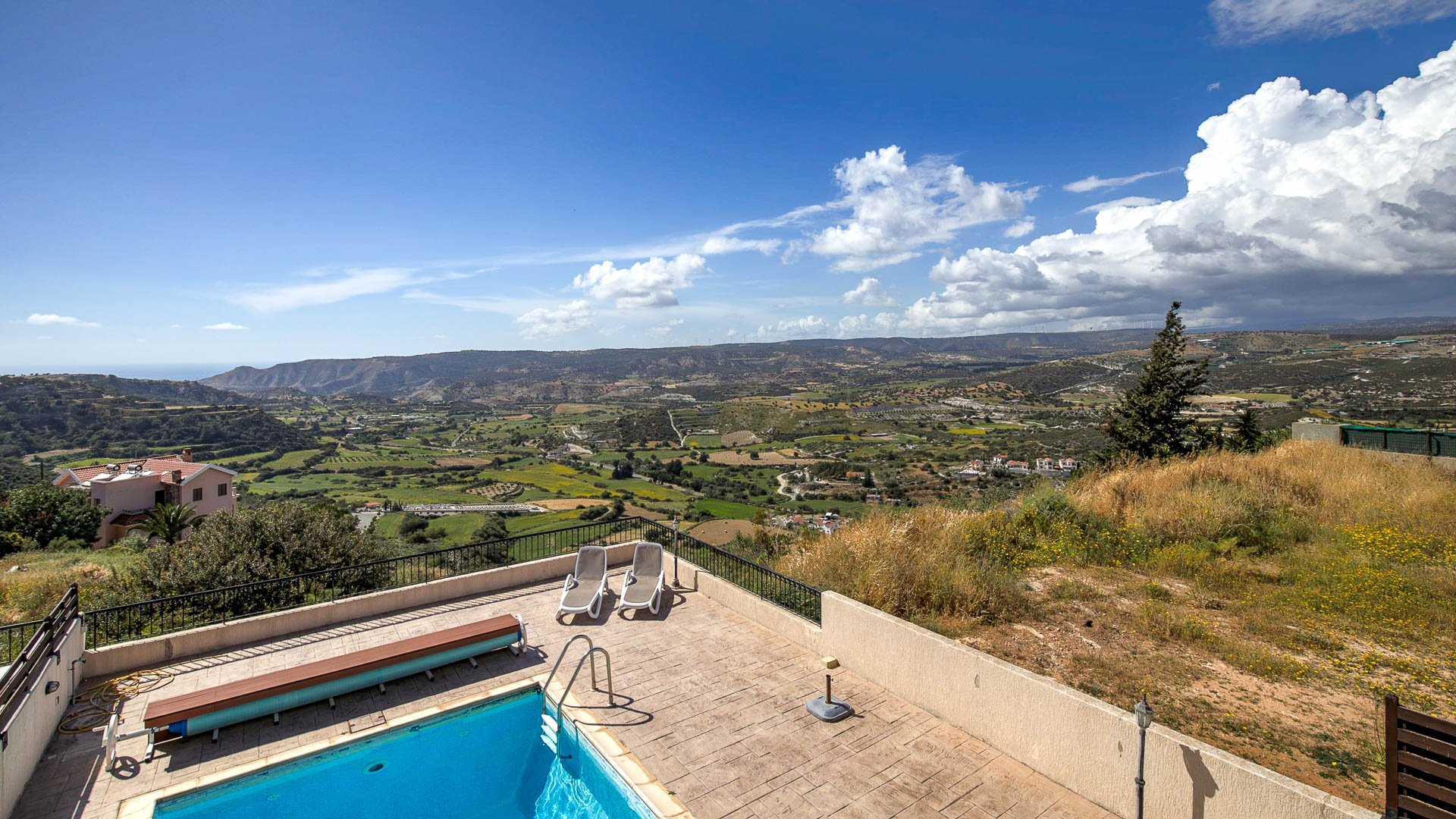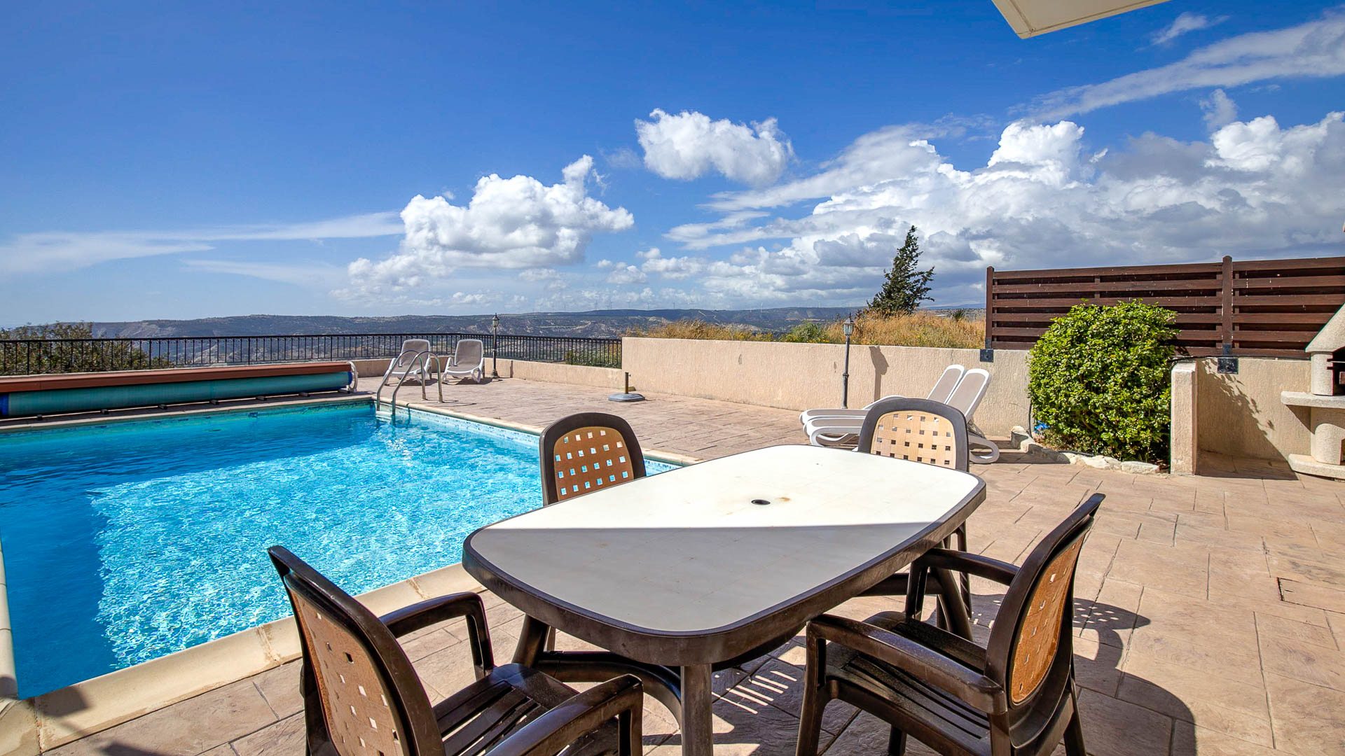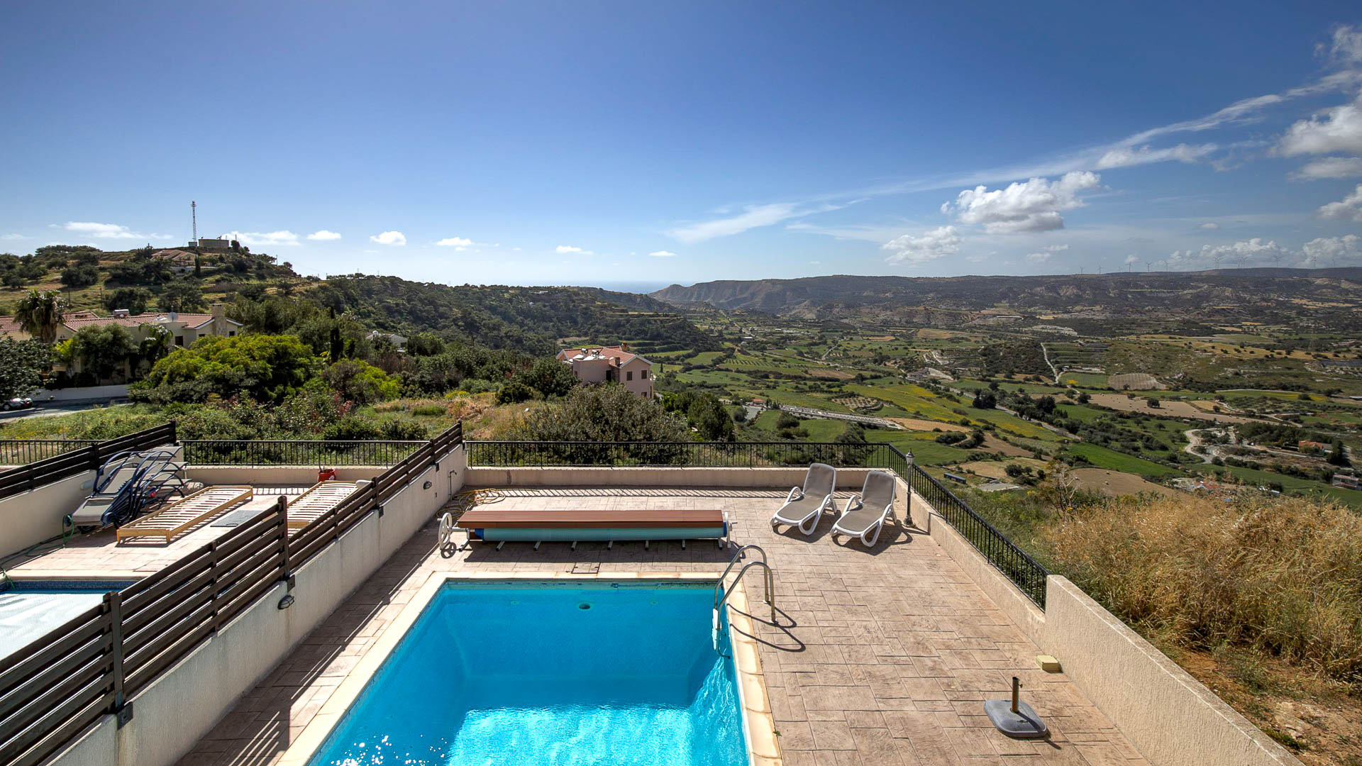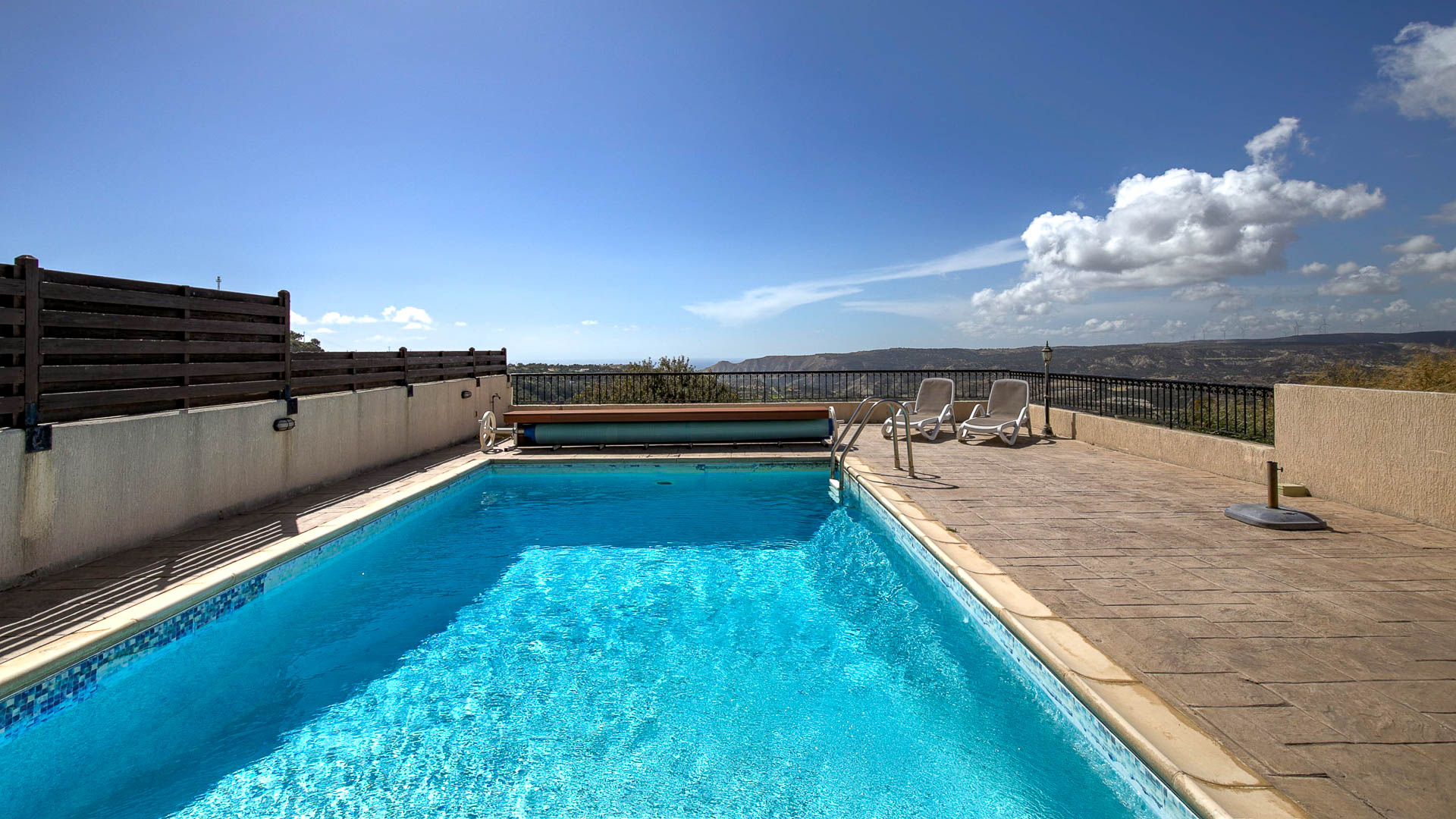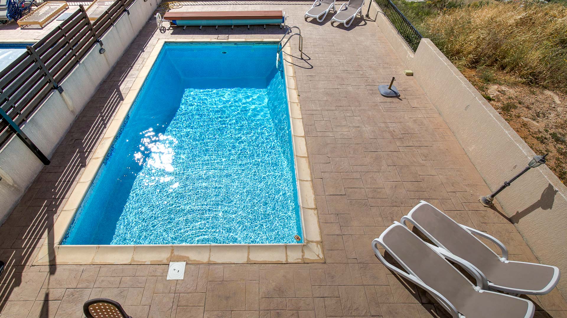 The pool area has a stamped concrete surround and plenty of room for sunbathing and admiring the views – sunsets are amazing from here.