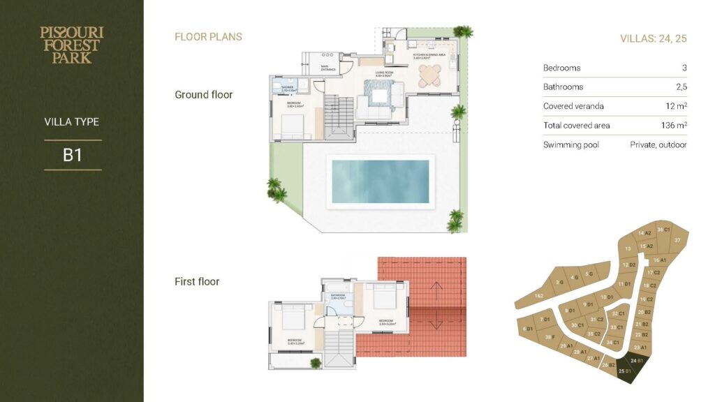 Bedrooms: 3 / Bathrooms: 2 / TYPE B1 VILLA / Covered Area: 137 sq. m. / Plot: 465 sq. m.