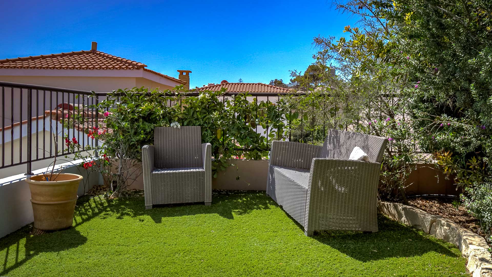 On the first floor, off a galleried landing, are two double bedrooms and a family bathroom. Both bedrooms have full air conditioning and fully fitted wardrobes. They lead out to a private garden area, beautifully planted and shady for a respite from the long Summer afternoons.