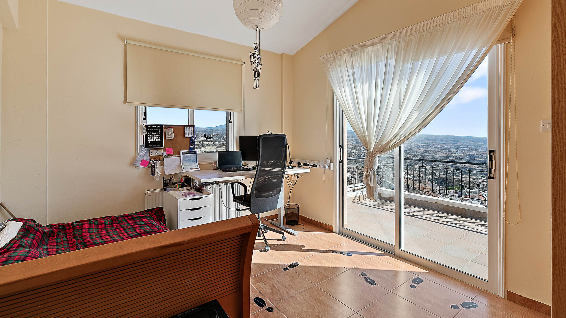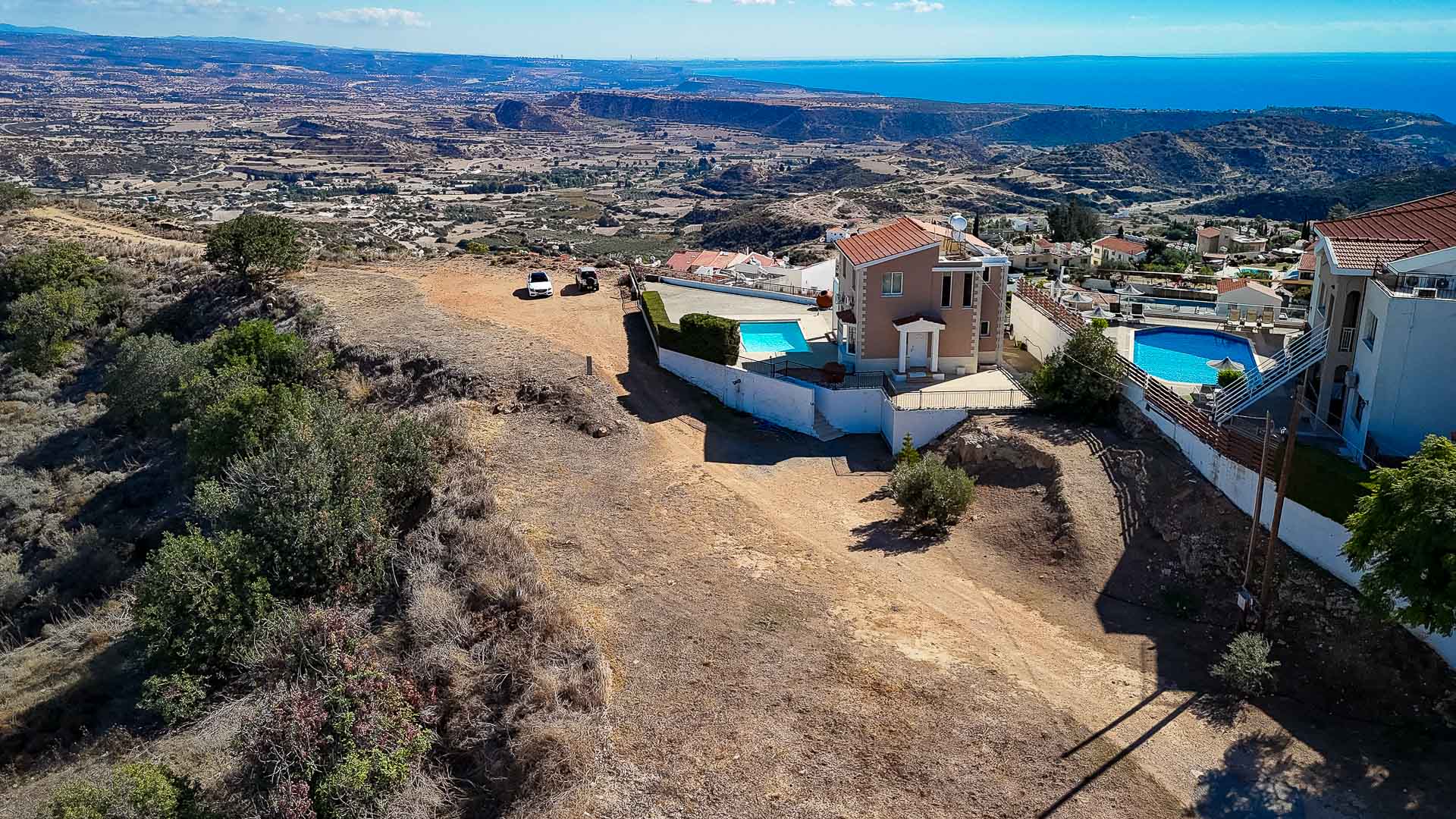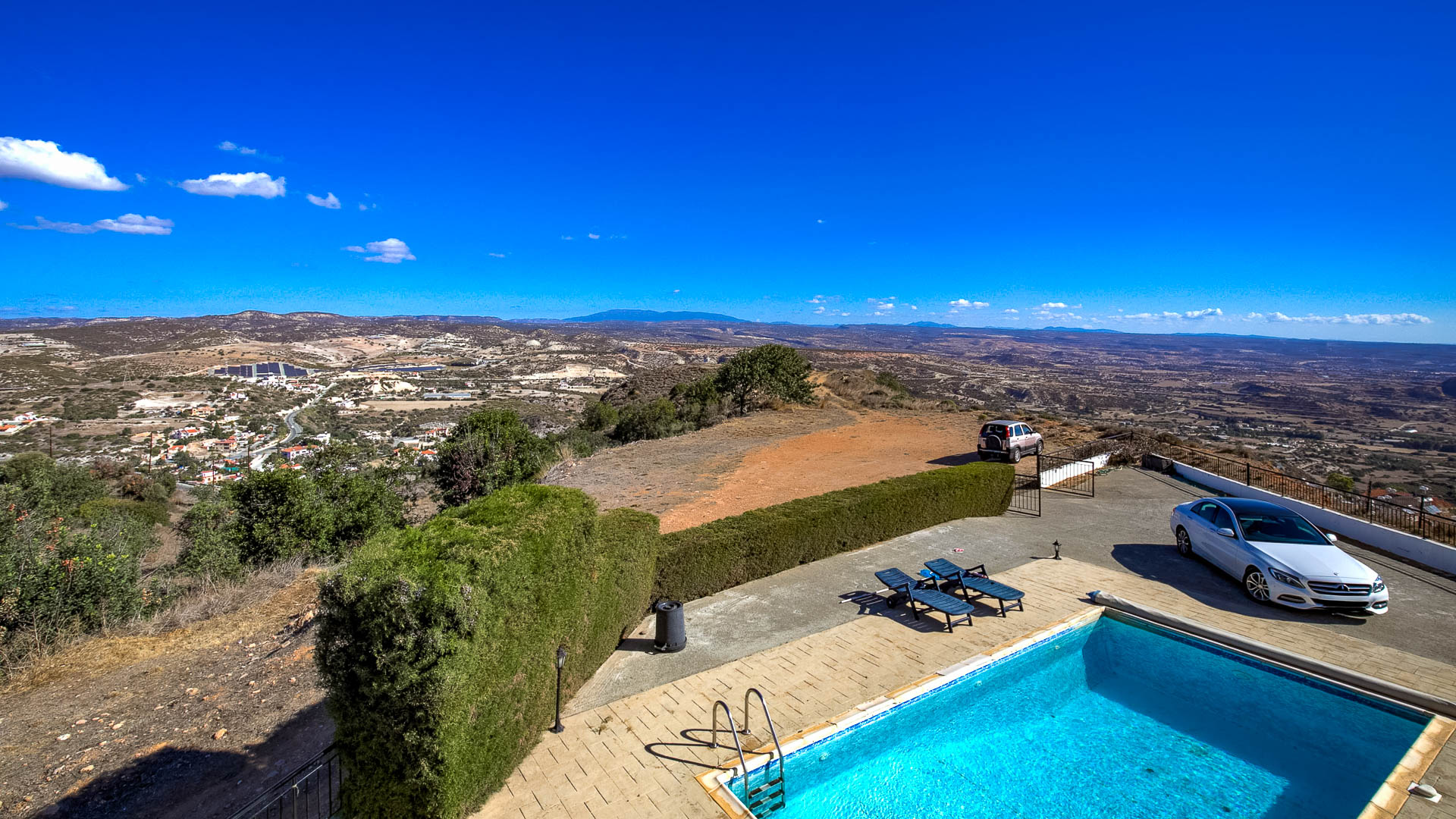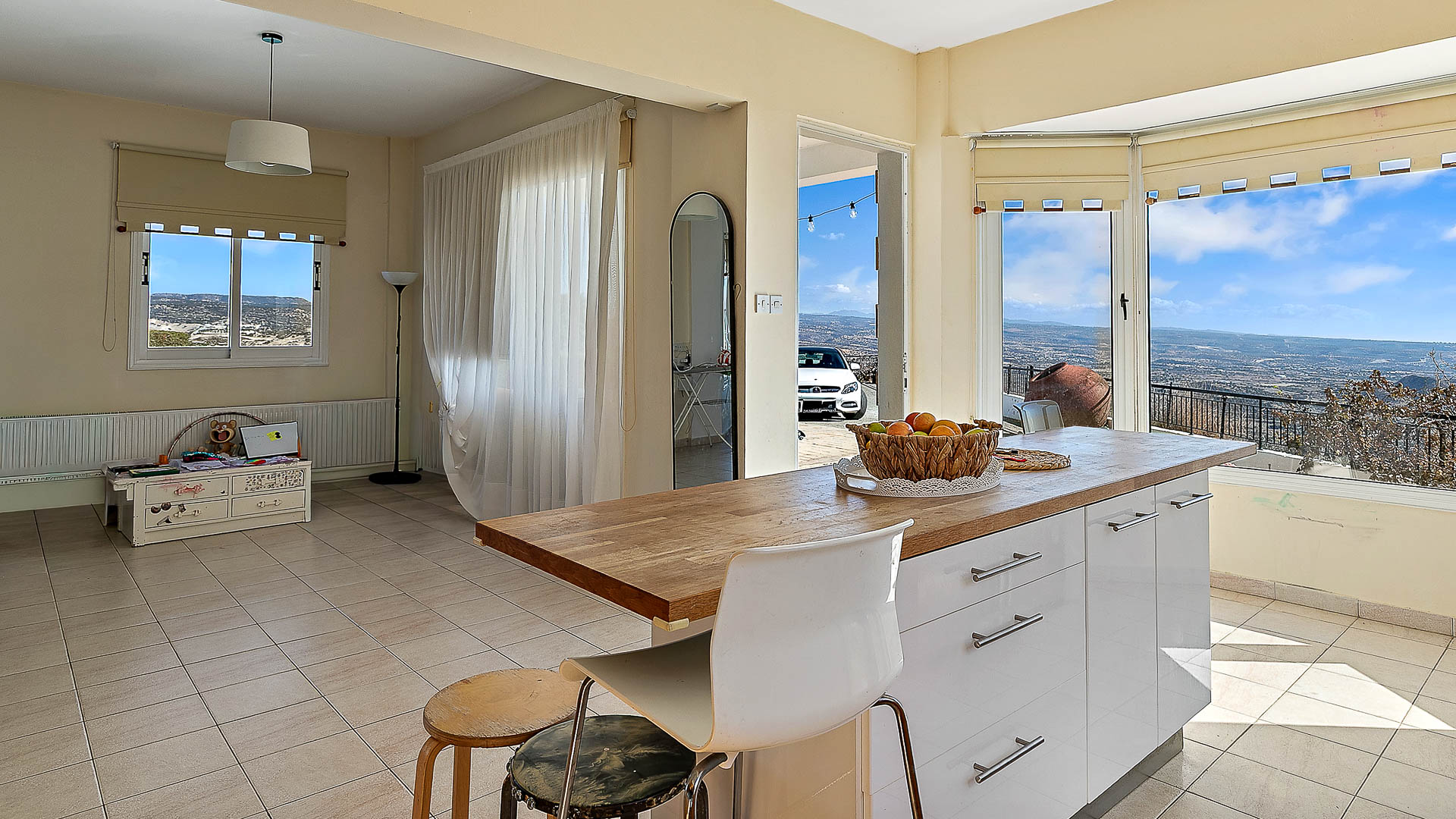 Set high on the hills of Pissouri Village, this exceptional three-bedroom villa combines modern open-plan living with uninterrupted sea and mountain views that stretch for miles along the Mediterranean coastline toward Limassol and up to the Troodos Mountains.