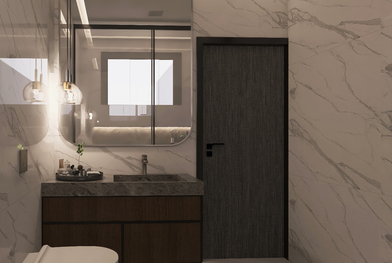 Practical luxury is woven into the villa’s design with an underground storage room and a separate machine room, maintaining seamless aesthetics while preserving functionality. Covered parking for two vehicles completes the picture, ensuring convenience matches the home’s elevated style.