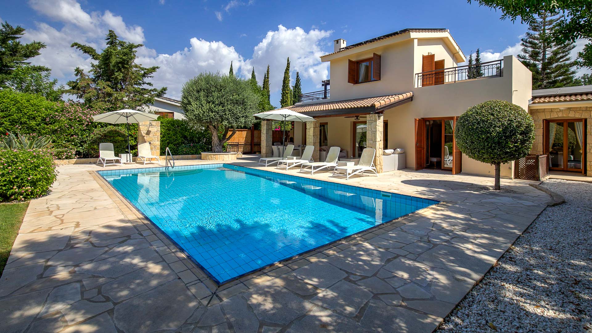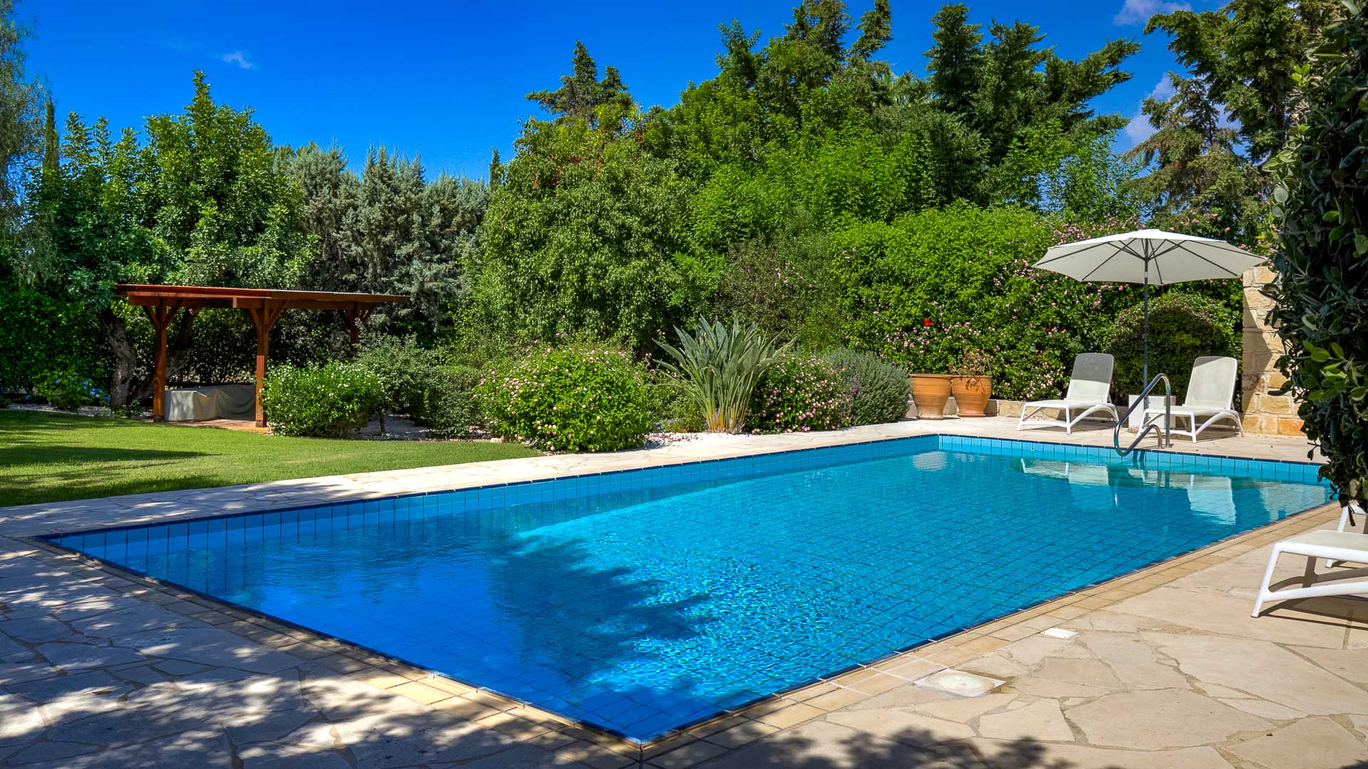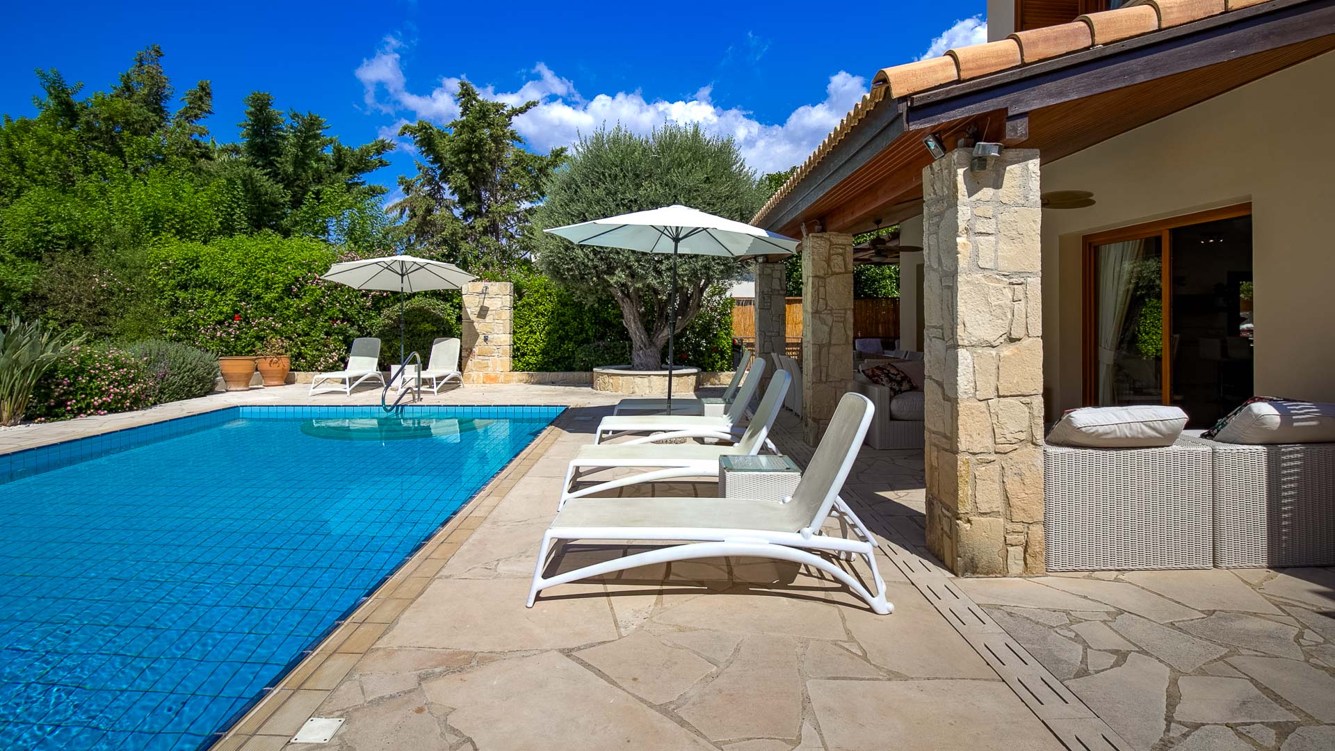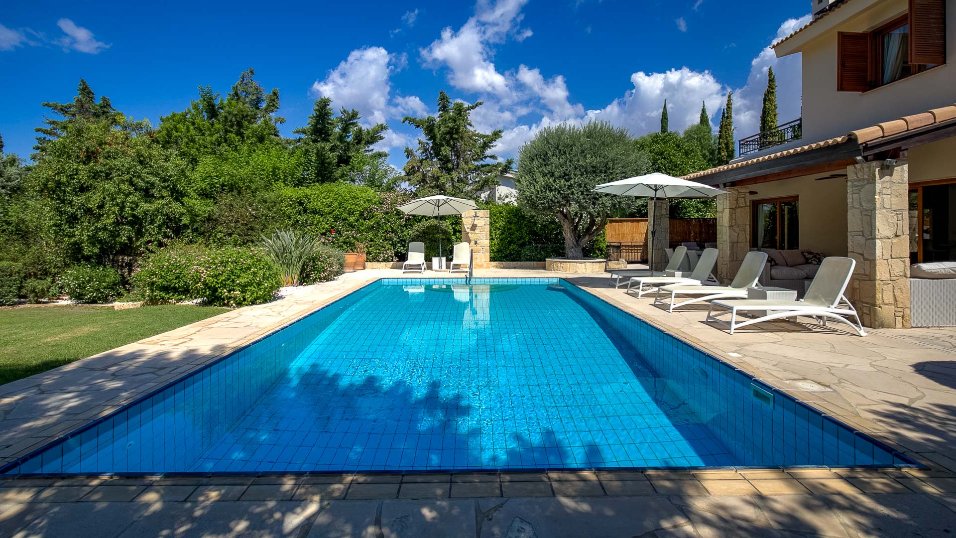 Bedrooms: 3 / Bathrooms: 2 / Large Living and Dining room / Western Plateau /Total covered area: 159 sq. m. / Plot: 1312 sq. m./ Heated Pool: 10m x 5m / Central Heating / Covered Veranda / Beautifully Landscaped Gardens with Lawn / Photovoltaic / Constructed in 2005