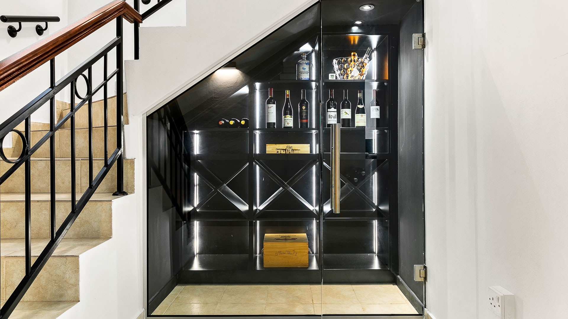 The property has a large basement with plenty of room for storage with a wine cellar, and space for a TV-lounge or private gym.
