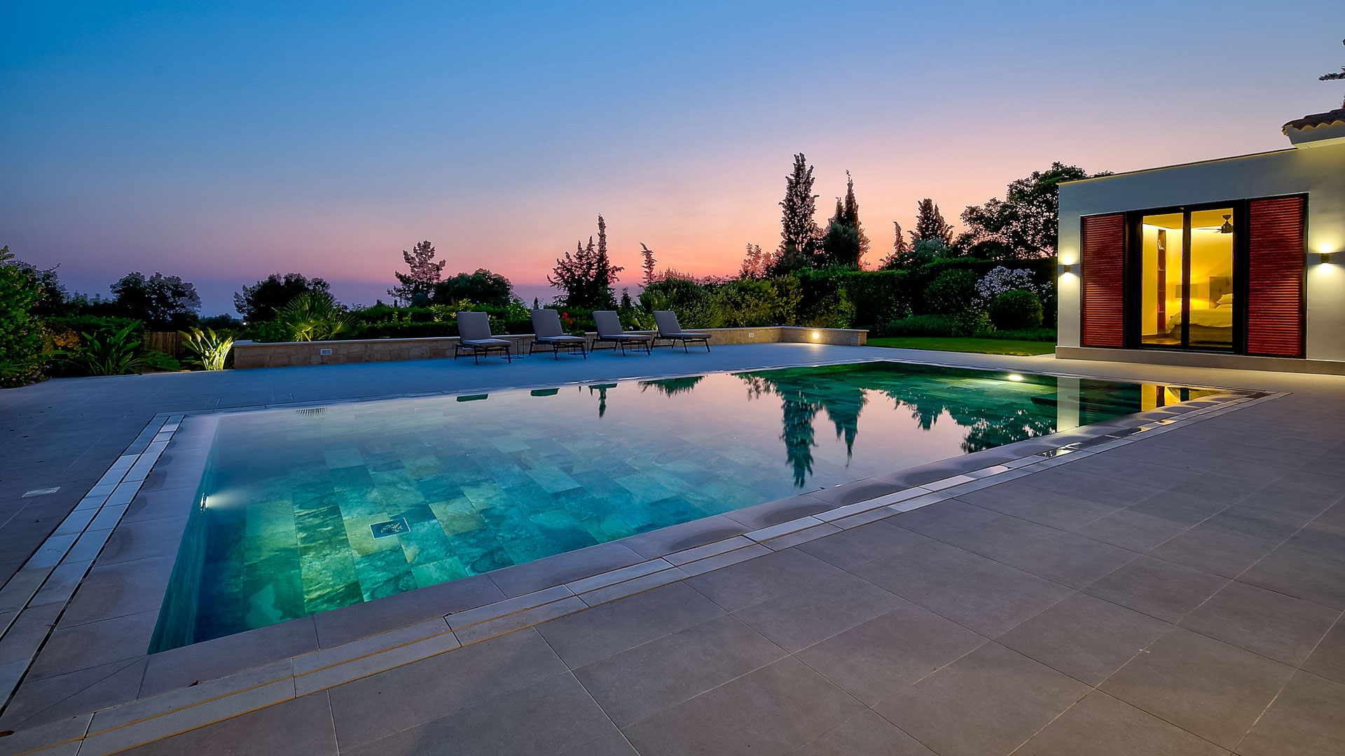Private swimming pool with mosaic finish and electric cover. Unique…