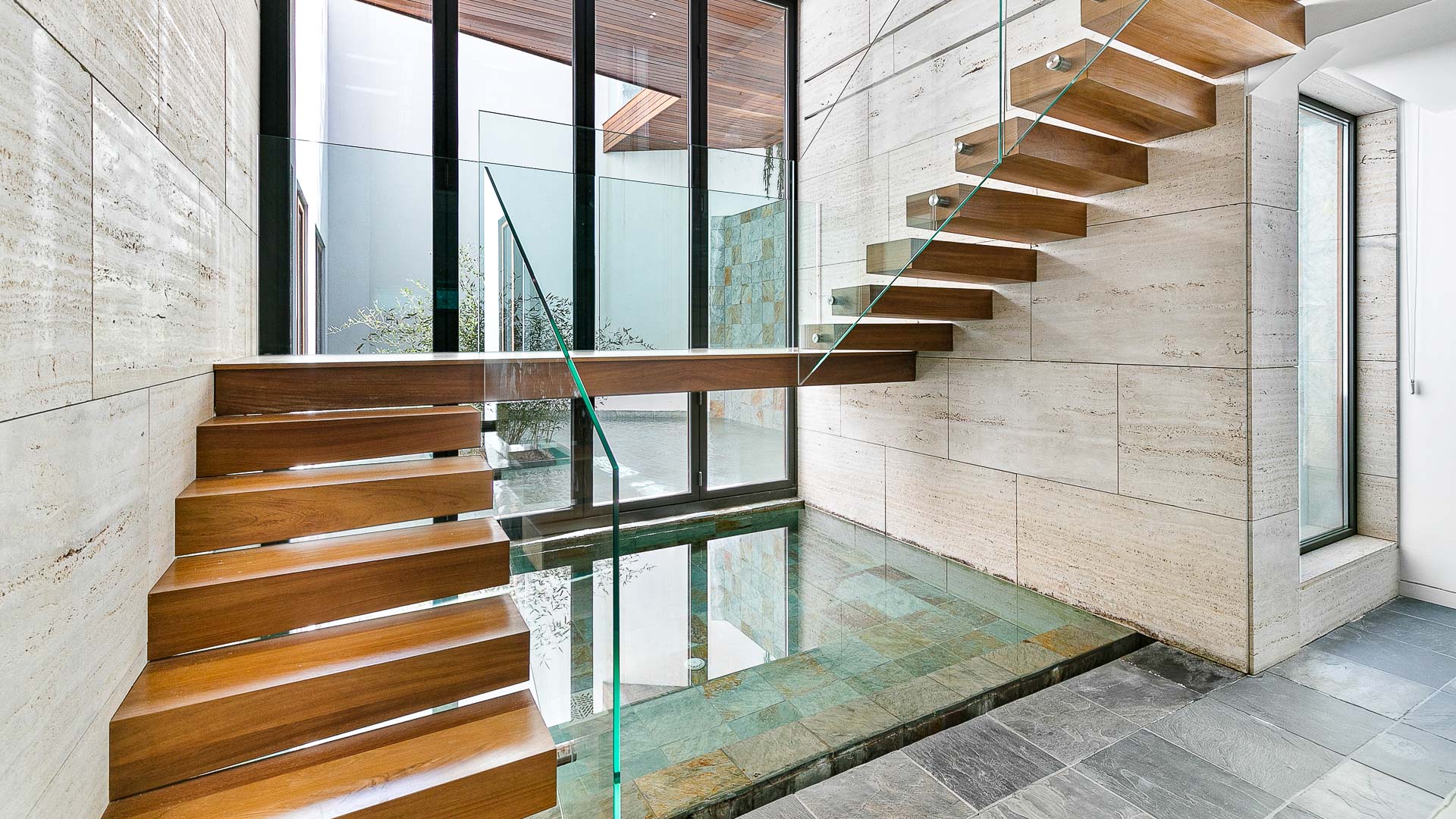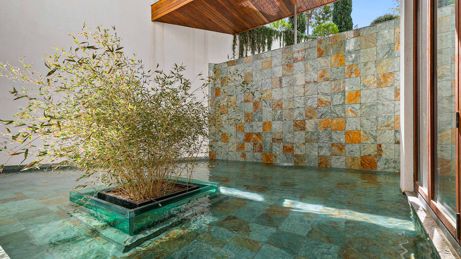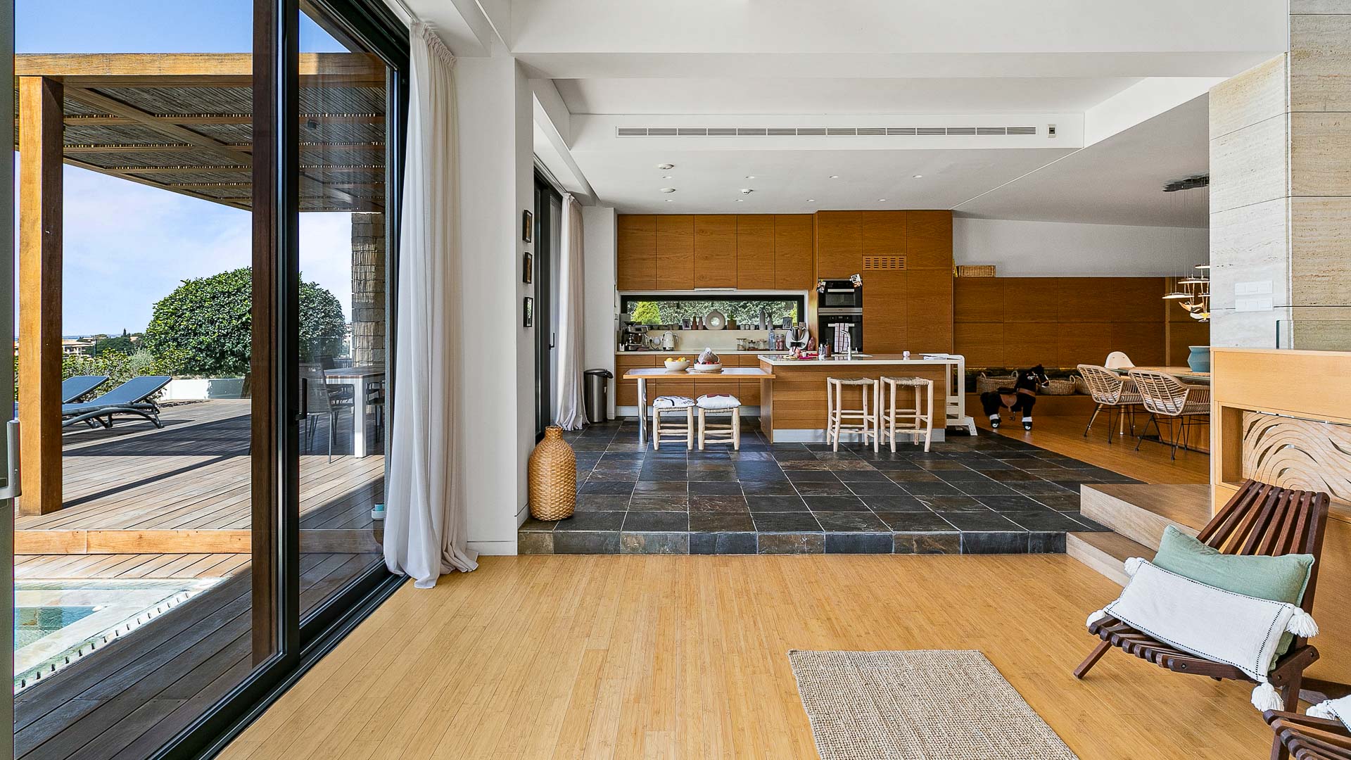 Bedrooms: 4 / Bathrooms: 4 / Plus independent apartment / Total Living Area: 451 sq. m. / Indoor: 414 sq. m. / Covered Verandahs : 37 sq. m. / Uncovered Verandahs: 142 sq. m. / Parking area: 77 sq. m/ Plot: 1343 sq. m. / 8 Separate water features including 20m lap pool passing under a glass bridge