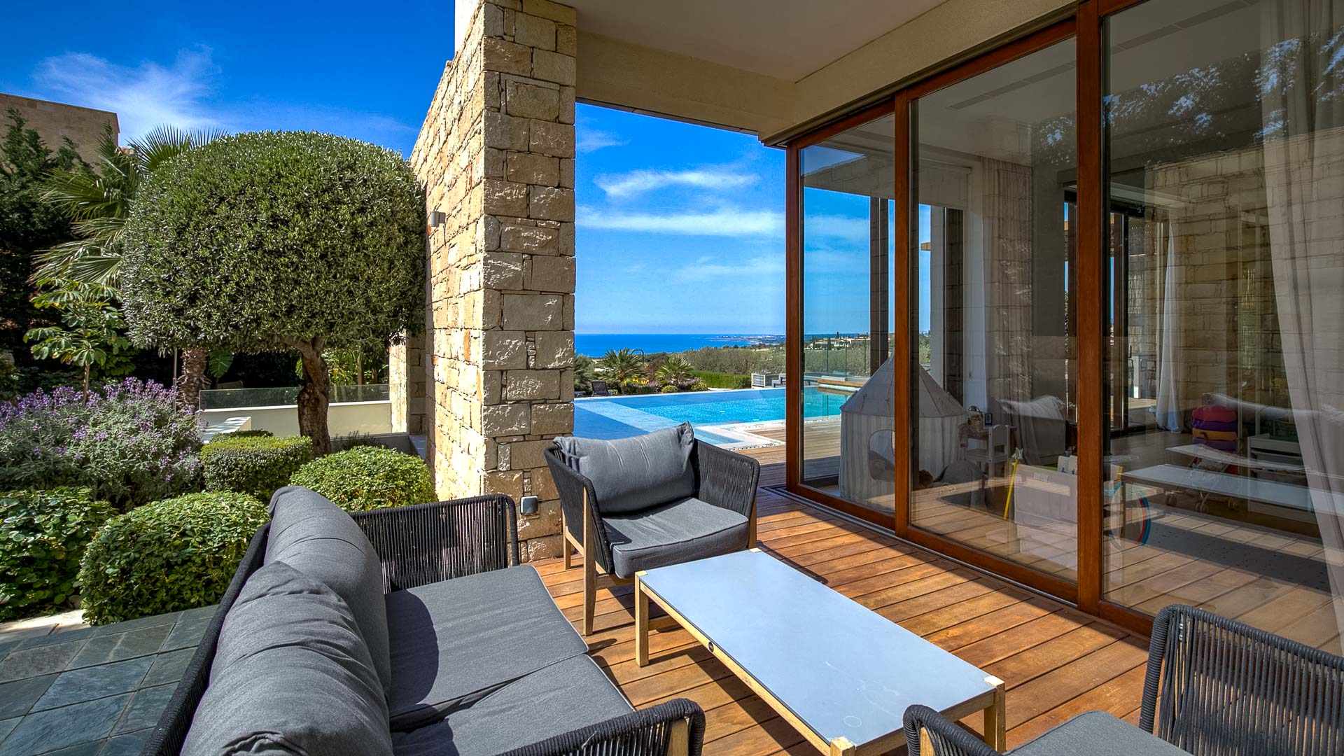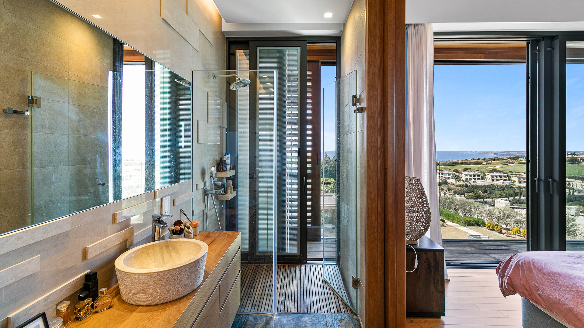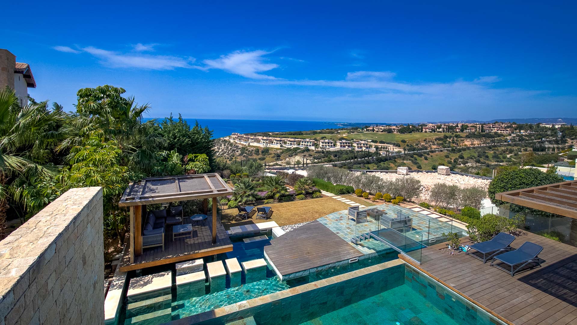 With its panoramic stunning sea and sunset views and uninterrupted views across the resort, this property is one of the finest residences on Aphrodite Hills and surely one of the most unique homes in the Island.