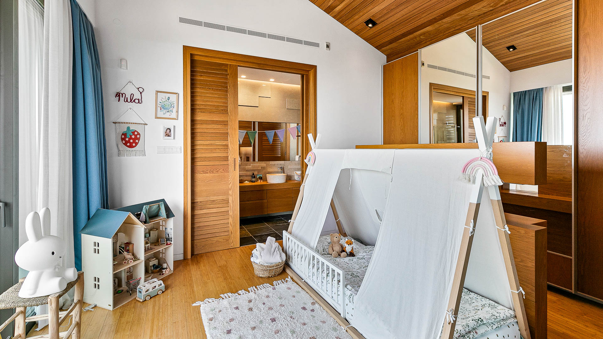 The villa boasts an 11-metre-high central atrium, adding to its feeling of space and natural light. On the ground floor is a spacious sunken living and dining area, beautiful study with full sea views and stunning modern open plan fitted kitchen with a central island work station. A TV den with fireplace and guest cloakroom are also on this level. Underfloor heating and VRV air conditioning system throughout.