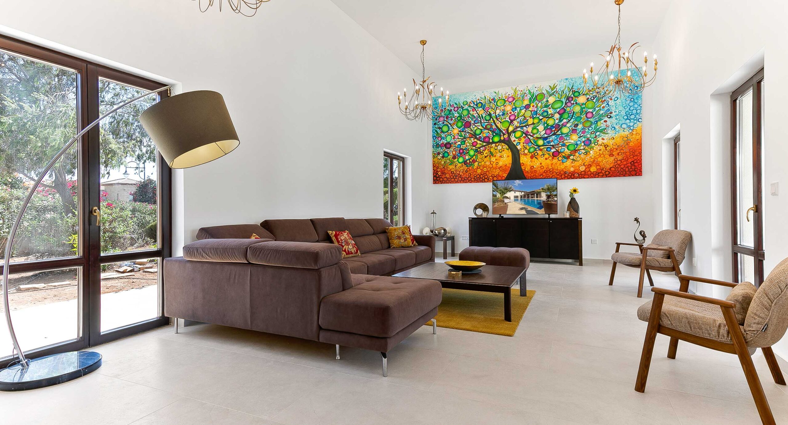 Inside, the villa is also vast and each room offers a real sense of space and comfort. The large double aspect living area is impressive and will immediately catch one’s attention.