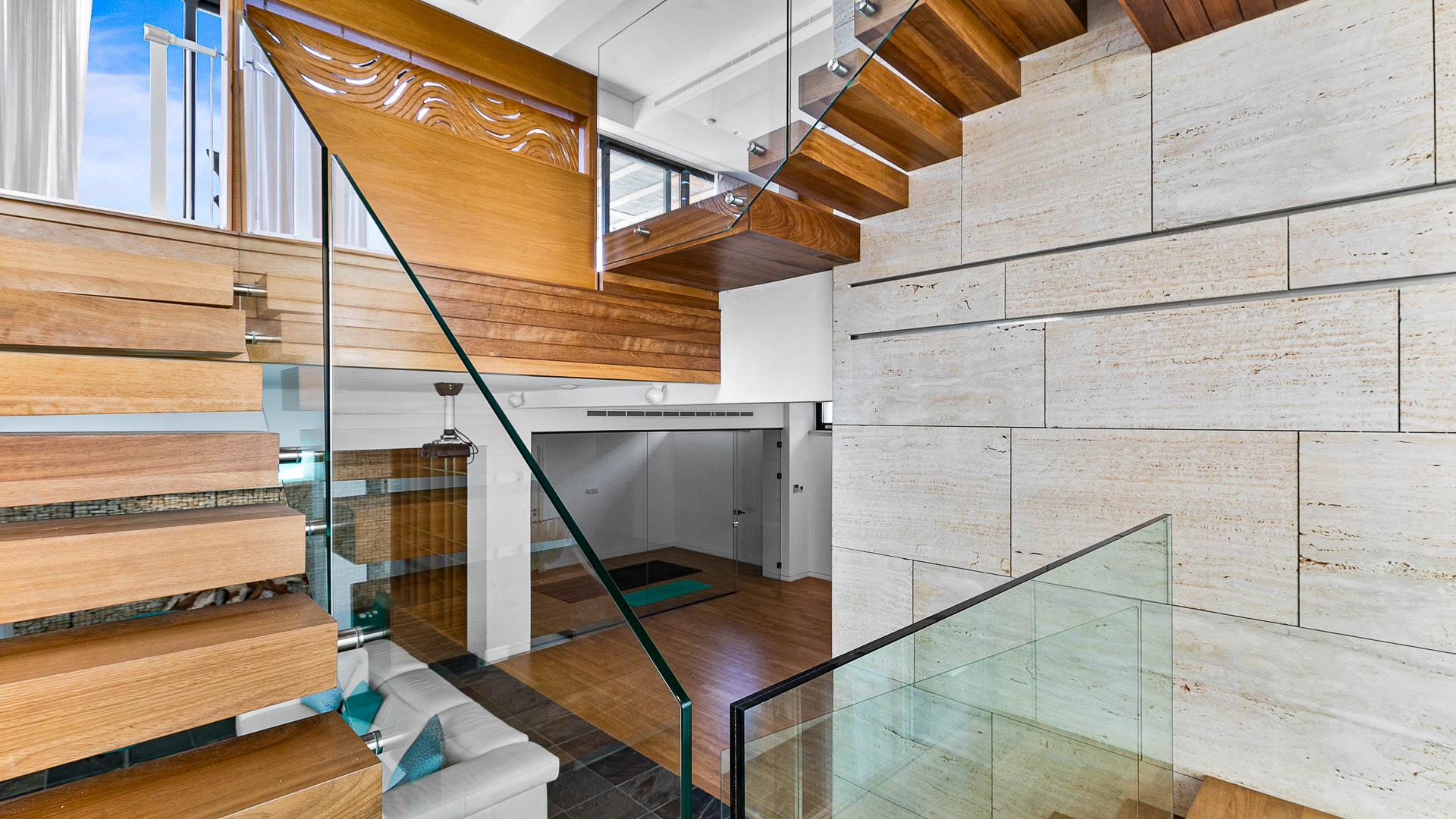 Bedrooms: 5 / Bathrooms: 5 / Plus independent apartment / Total Living Area: 451 sq. m. / Indoor: 414 sq. m. / Covered Verandahs : 37 sq. m. / Uncovered Verandahs: 142 sq. m. / Parking area: 77 sq. m/ Plot: 1343 sq. m. / 8 Separate water features including 20m lap pool passing under a glass bridge