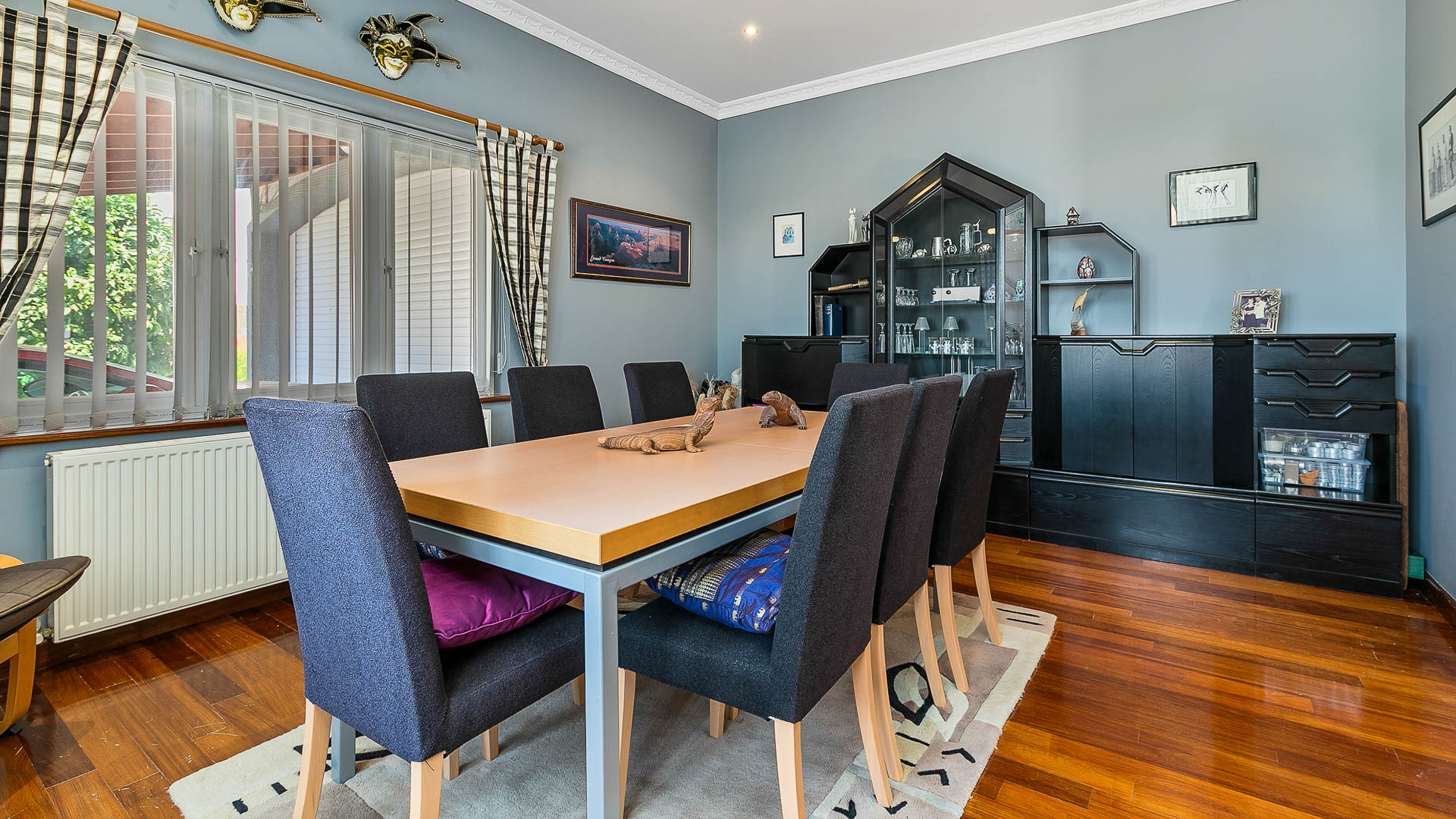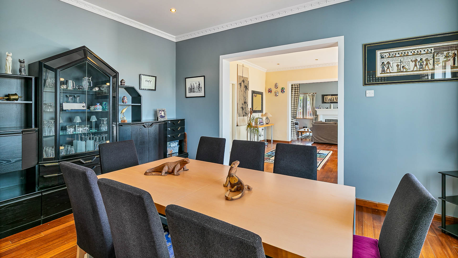 Large solid wood doors open into a spacious hall, flooded with natural light from the high ceilings and architectural stairwell. Two very spacious reception rooms greet you to the left and right. The living area to the right benefits from large windows, a centrepiece fireplace and is well presented. To the left of the hallway is the comfortable formal dining space again light and good presentation here ensure your family and guests will feel relaxed at your dining table.